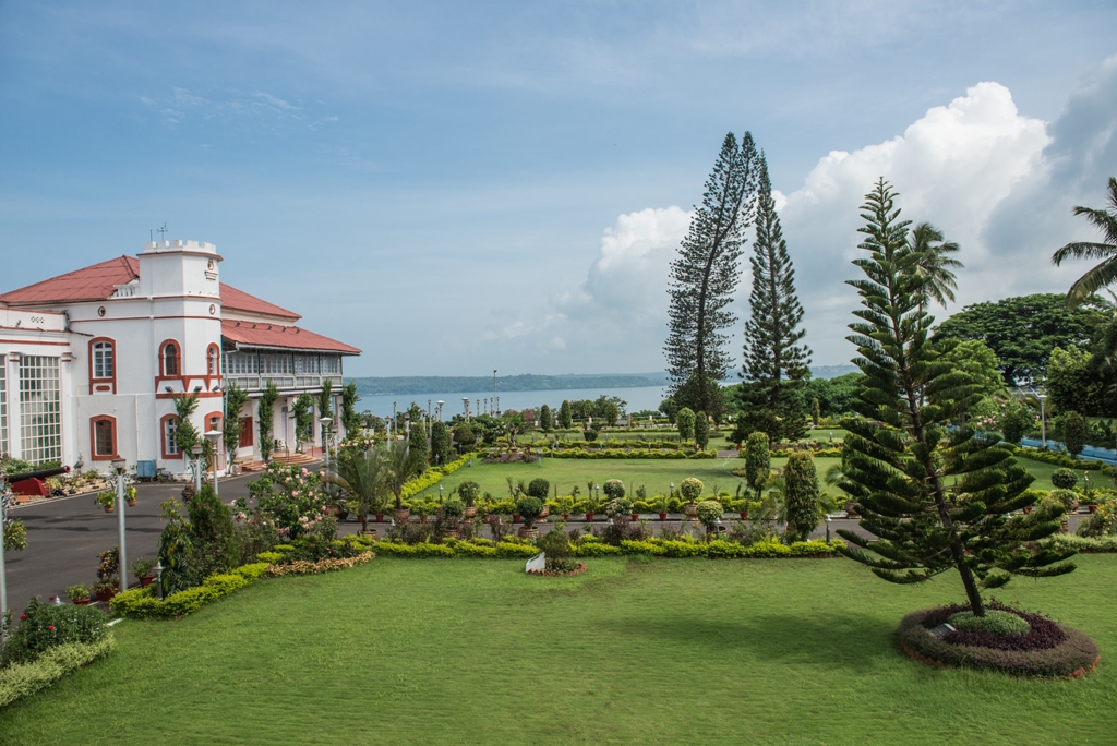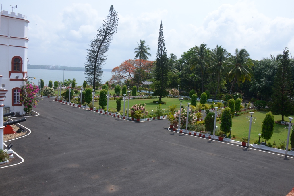 Down the estate, on the Western side, just 3 minutes' drive from the Lok Bhavan through the forests, is a spot, named as 'Cannon Point'. A suitable small park, pathways and lighting have been provided at this scenic spot. Two old cannons, which were located and lifted from the shore waters, are placed on pedestals here. This place offers a beautiful view of the sunset and the ever-surging tides of the Arabian sea lustily lashing at the shore.